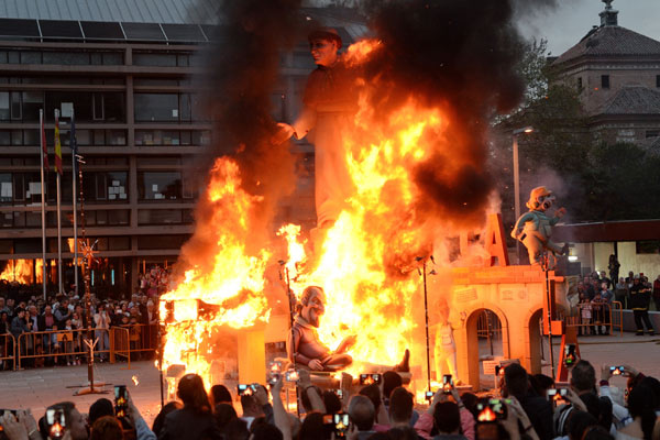 El colofón final fue la quema de una falla que crearon maestros valencianos