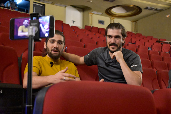 Adrián Salzedo y Carlos Solano nos atienden en el patio de butacas del Teatro Nuevo Apolo / Imagen: redacción