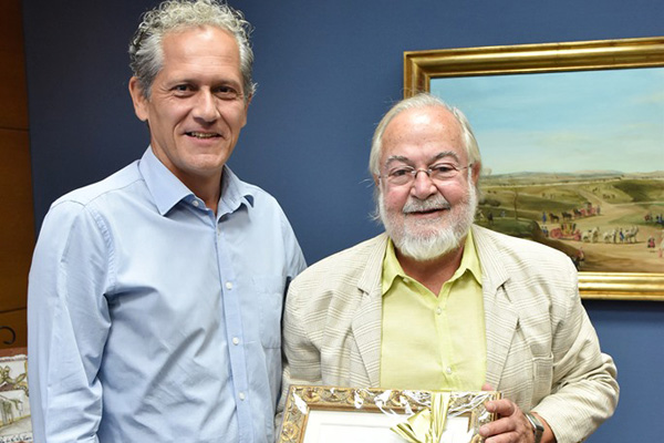 Con este recibimiento institucional en el Ayuntamiento, el alcalde ha querido de forma personal transmitirle en nombre del municipio su enhorabuena a Pedro Saénz de Almeida por esta “prestigiosa distinción que supone un reconocimiento a sus años de dedicación, estudio, e investigación del mundo clásico, así como la transmisión de esos conocimientos a sus alumnos durante tantos años bien en las propias aulas como sobre las tablas del teatro”.