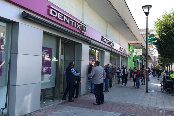 Esto es lo que está ocurriendo, en este mismo momento, en la clínica que tiene Dentix en la calle Portugal, ubicada en nuestro municipio. “Llevamos aquí desde primera hora de la mañana y solo hay tres chicas, aunque es una de ellas la que se encarga de atender a la gente que está en la cola”, nos cuenta una cliente que aún no ha sido atendida, a pesar de que acudió antes, incluso, de que la clínica comenzase a prestar servicio.