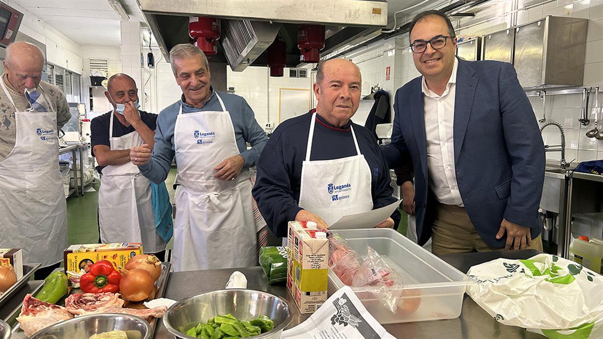 Enseñar a cocinar y planificar la economía doméstica a hombres mayores de 65 años son las bases que rigen el programa municipal "Mayorchef", promovido por la concejalía de Mayores. El alcalde de Leganés, Santiago Llorente, y la concejala de Mayores, Angelines Micó, han visitado una de las clases de la "Academia Mayorchef" para entregar los diplomas de participación. Estas clases se imparten en las cocinas profesionales del centro municipal 1º de mayo (calle Química, 1) de 17:00 a 20:00 para facilitar que más vecinos puedan aprender a cocinar de la mano de un cocinero profesional. Desde 2021 se han celebrado ya cinco ediciones y han pasado por este taller un total de 52 vecinos mayores.