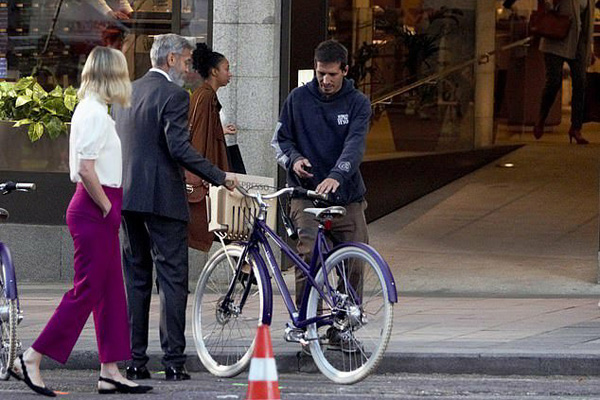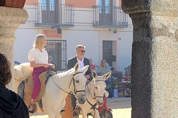 Lo único que se pudo ver fue la escena exterior, en la que Clooney y Larson llegan bici a la tienda. Él lucía una canosa barba y vestía un traje oscuro, y ella llevaba una blusa blanca y unos pantalones fucsias. Y al parecer el anuncio tiene otra localización madrileña, Navalcarnero concretamente, ya que al día siguiente grabaron otra escena exterior en la que los dos actores paseaban en burro por la plaza de Segovia, pleno centro del pueblo.