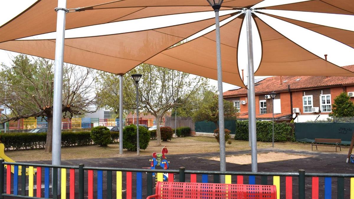 Recientemente se han instalado sombras artificiales tipo vela en el parque infantil situado entre la Avda. Europa y la calle Ciudad de París, frente al colegio público Henares.