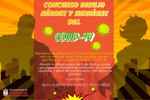 Si tienes entre 3 y 12 años, puedes participar dibujado a tu heroína o héroe del Covid-19. Solo necesitarás un folio de tamaño A4 que, una vez realizado el dibujo, debes escanear o fotografiar y enviar a j.garcia@ayto-moraleja.es, antes del 6 de abril. En el correo electrónico, debe indicarse el nombre, los apellidos, la edad y los datos de la persona de contacto.