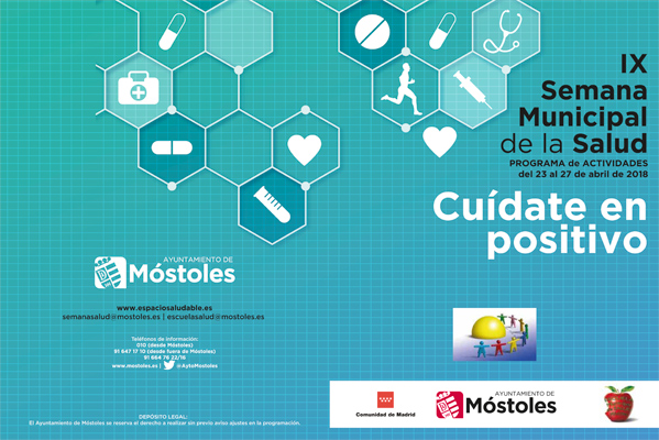 Esta semana, del 23 al 27 de abril, Móstoles acogerá la IX Semana Municipal de la Salud. ‘Cuídate en positivo’ ha sido el lema elegido para la novena edición de esta semana, que con el paso de los años se ha convertido en un evento de referencia para asociaciones e instituciones sanitarias. Este acontecimiento sirve a estas asociaciones e instituciones trabajar de manera conjunta para poder aportar a la ciudadanía información, formación y recursos, en torno a la salud, que puedan ayudar en la prevención de enfermedades y promover un estilo de vida saludable.