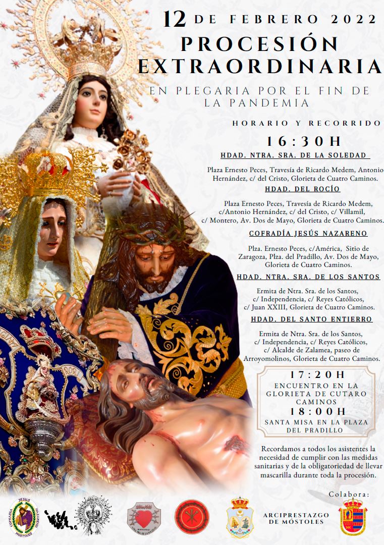 Este evento es único en la historia de Móstoles, ya que nunca antes habían participado en una misma procesión las imágenes titulares de las cinco hermandades: la patrona de Móstoles, Nuestra Señora de los Santos, de la Hermandad de Nuestra Señora de los Santos y San Simón de Rojas; Jesús Nazareno, de la Cofradía de Jesús Nazareno y Cristo Resucitado; Nuestra Señora de la Soledad, de la Hermandad de Nuestra Señora de la Soledad y Cristo Yacente; el Santísimo Cristo Yacente de la Victoria, de la Hermandad del Santo Entierro; y el simpecado de la Hermandad del Rocío de Móstoles.