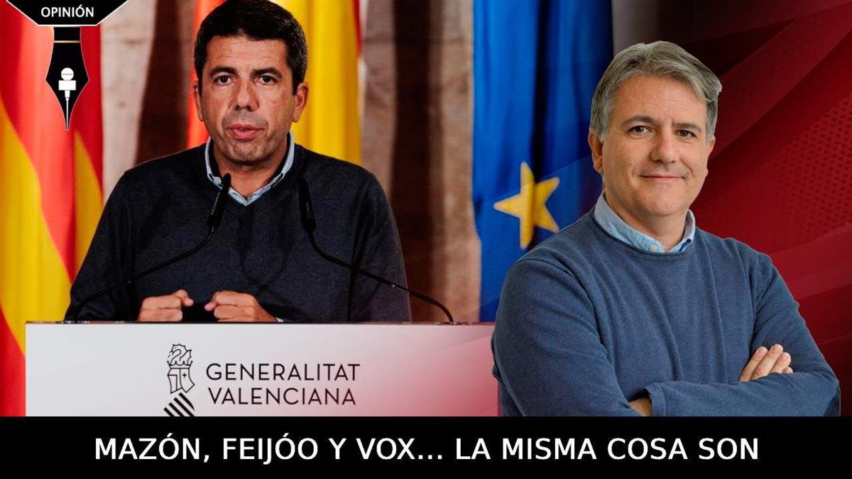 Son unas condiciones que ya aceptó Mazón hace dos años, haciendo suyo el ideario de la extrema derecha sobre la violencia de género, sobre el valenciano, sobre el cambio climático, la memoria democrática, o la inmigración. Por tanto podemos convenir que Mazón y Vox son prácticamente lo mismo. Defienden el mismo proyecto de región y proponen las mismas soluciones para acometer los problemas a los que se enfrentan los valencianos. Eso se refleja en unos presupuestos que recortan partidas para luchar contra el cambio climático lo que no deja de ser preocupante ya que fue ese mismo cambio climático lo que provocó la riada de hace unos meses. Pero aprovechan la coyuntura y ya que están también recortan en transparencia e igualdad, en la protección al valenciano, en memoria histórica o en producción ecológica.