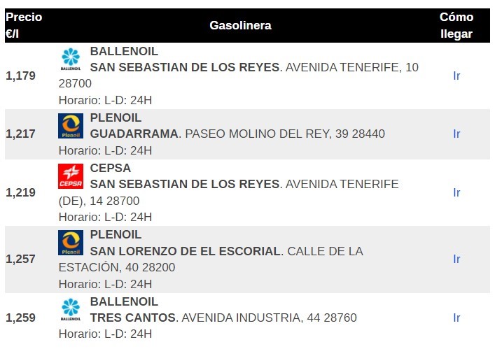 Y este tipo de herramientas online fáciles de usar permiten en apenas unos segundos saber cuáles son las gasolineras baratas de Madrid para comparar entre diferentes estaciones de servicio o localidades cercanas. Basta una sencilla búsqueda para conocer las que tienen los mejores precios.