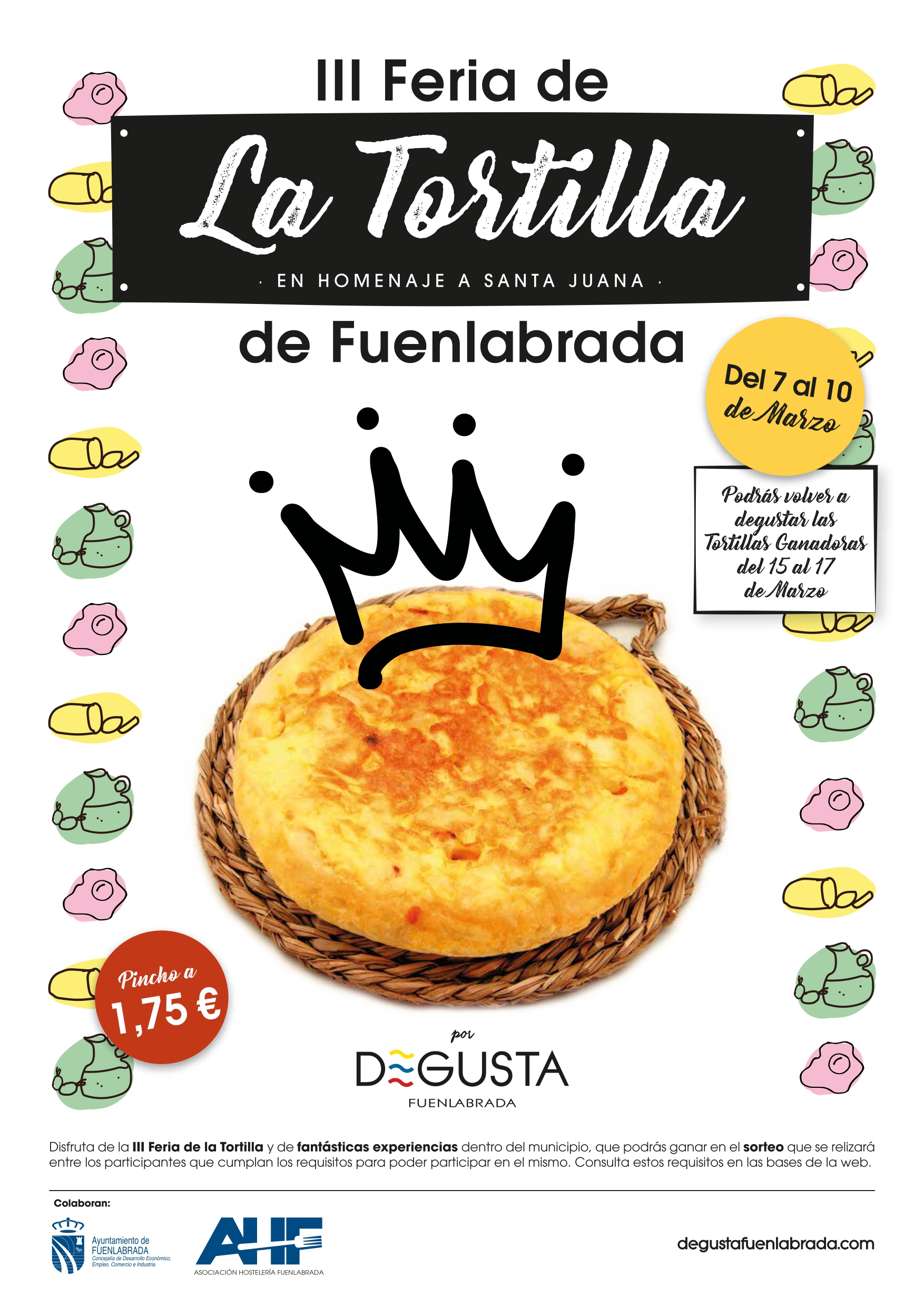 El Ayuntamiento fuenlabreño en colaboración con la Asociación de Hosteleros de Fuenlabrada ha anunciado la que será la tercera edición de esta feria en la que bares y restaurantes del municipio ofrecerán por un precio de 1’75 € una tapa de tortilla cuyo ingrediente principal será el huevo, la patata o ambos.