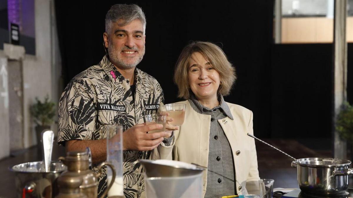 La delegada de Cultura, Turismo y Deporte, Marta Rivera de la Cruz, junto al precursor y propietario del bar-coctelería Salmon Guru, Diego Cabrera, ha presentado esta mañana en la Nave 12 de Matadero Madrid un cóctel especial dedicado a la ciudad, Madrid 91. El Ayuntamiento, en colaboración con Salmon Guru, ofrece a madrileños y visitantes esta iniciativa, que tendrá su puesta de largo en las próximas Fiestas de San Isidro 2025.