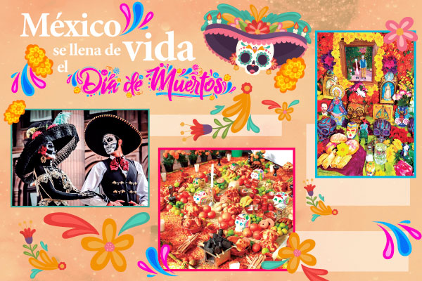 El ‘altar de muertos’ se ha erigido como uno de los elementos clave de la festividad mexicana por excelencia. Según la tradición, se cree que las ánimas regresan a disfrutar de los mismos; de esta forma, vivos y muertos se reencuentran. El altar consta de dos niveles, evocando el cielo y la Tierra e invitando al reencuentro de ambos mundos.