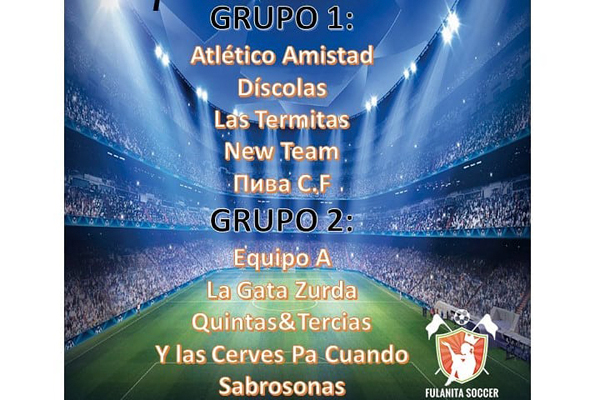En el grupo 1 contaremos con 5 equipos: Atlético Amistad, Díscolas, Las Termitas, New Team y el пивa. Los otros 5 equipos estarán en el grupo 2: Equipo A, La Gata Zurda, Quintas&Tercias, Y las Cerves Pa Cuando y Sabrosonas.