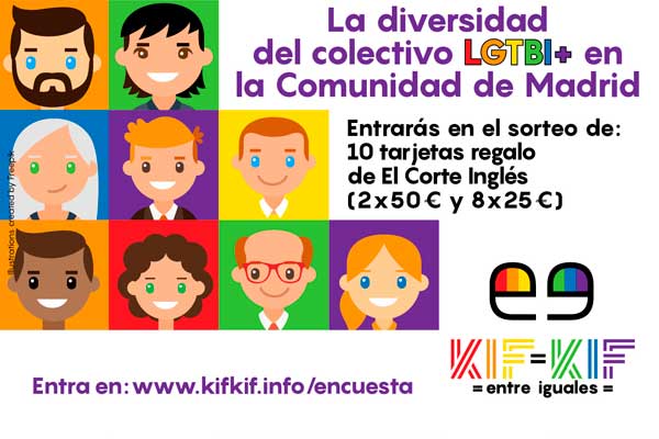 Los resultados ayudarán a conocer mejor el colectivo LGTBI+ y a continuar luchando por los derechos de las personas del colectivo.  Uno de los grandes desafíos a los que se enfrentan las asociaciones que luchan por los derechos LGTBI+ es la ausencia de información estadística que permite describir, comprender y afrontar las problemáticas específicas de las personas LGBTI+. Ante esta realidad, desde la asociación Kifkif han decidido hacer frente a este vacío a través de la investigación, por lo que han lanzado la encuesta “La diversidad del colectivo LGTBI+ en la Comunidad de Madrid”, cuyo objetivo es recopilar datos para obtener una radiografía real de la pluralidad de identidades, orígenes y experiencias de quienes lo componemos.