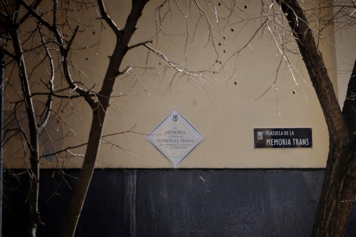 La Plazuela de la Memoria Trans es ubicada en a pocos metros de la plaza de Chueca, en la esquina de las calles de San Gregorio con San Lucas, que hasta ahora no tenía nombre en el callejero municipal. Una apuesta del gobierno de Manuela Carmena con el objetivo de convertirla en el lugar de reivindicación de los derechos LGTBI en nuestra ciudad.