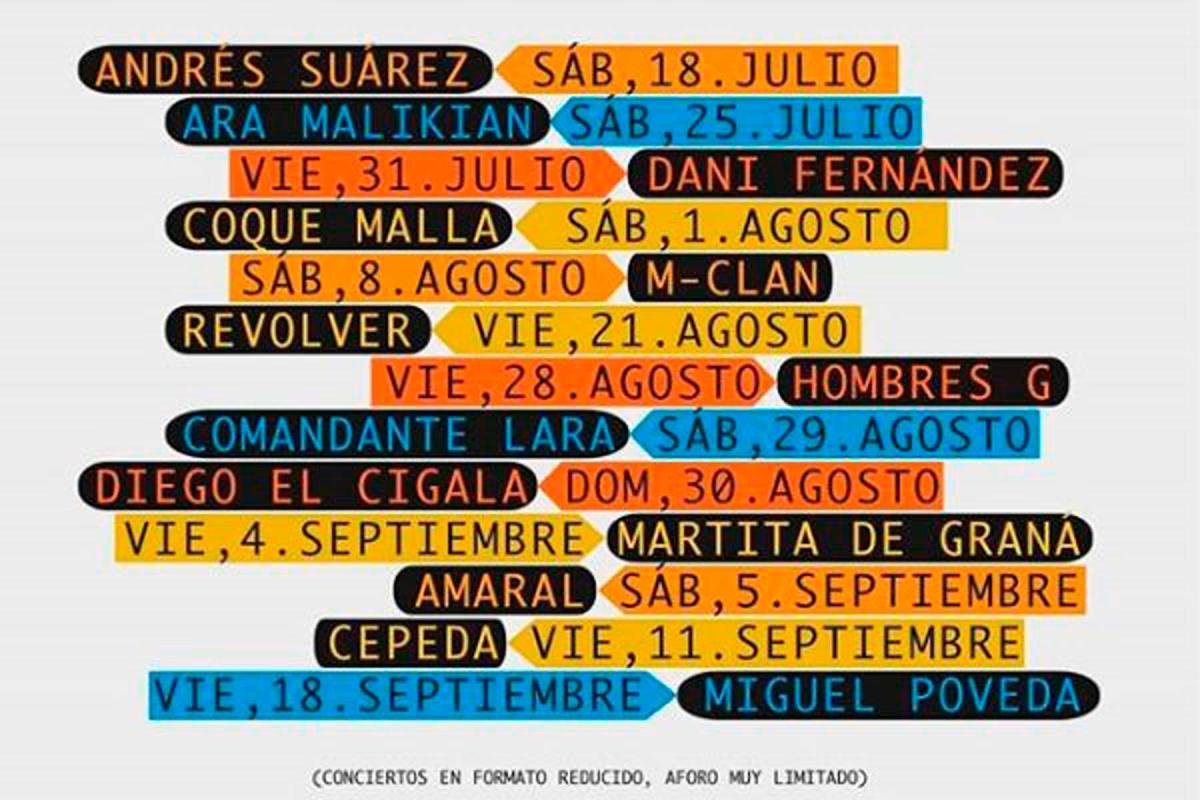 El cartel se abrirá con el ferrolano Andrés Suárez, el 18 de julio, y continuará su andadura con Ara Malikian, Dani Fernández, Coque Malla, M-Clan, Revolver y Hombres G, entre otros, ofreciendo, así, una parrilla de directos que nada tienen que envidiar a los tiempos 'pre pandemia' en los que aún no existía la denominada nueva normalidad.