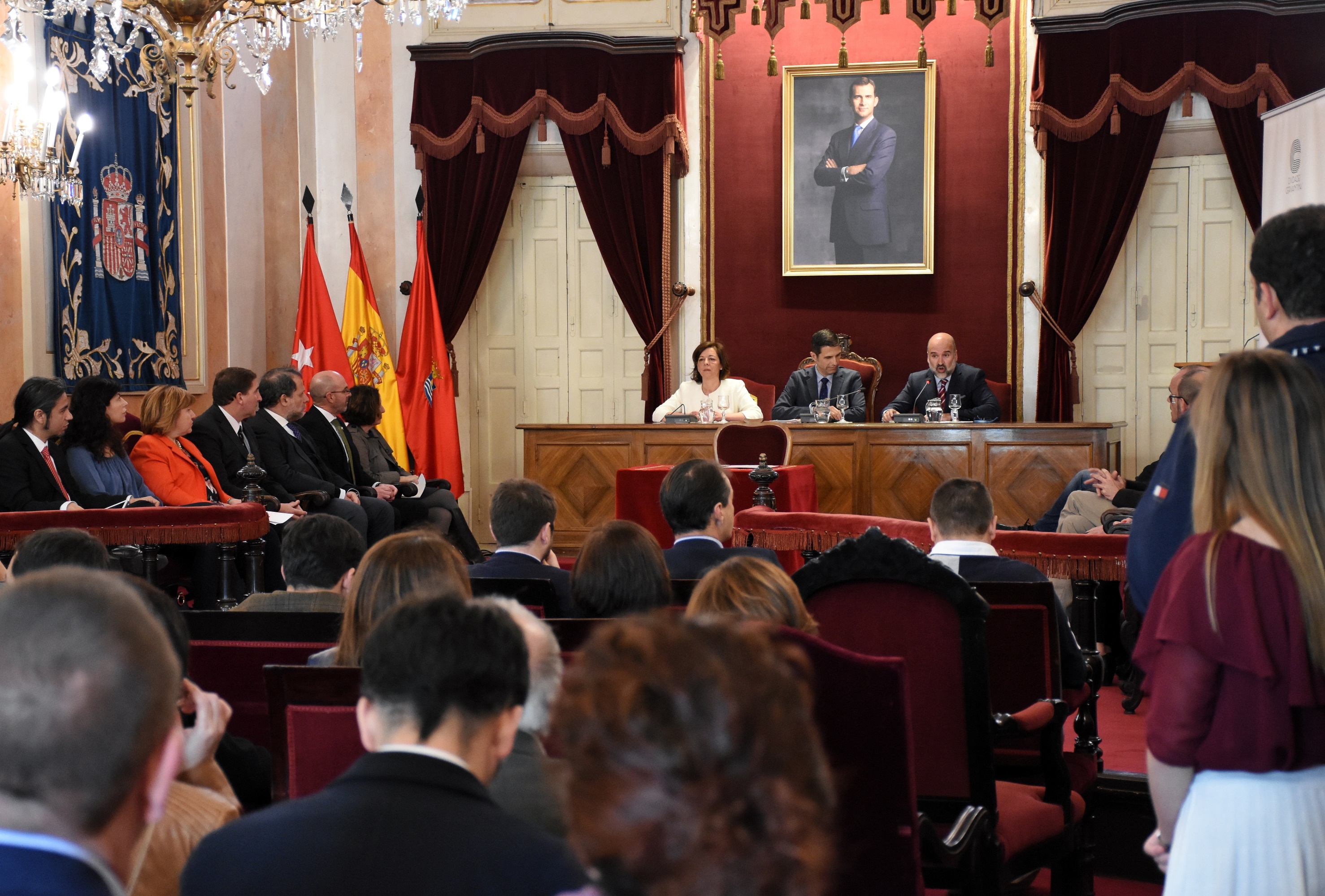 El Salón de Plenos del Ayuntamiento acogió la puesta de largo de la Red de ciudades cervantinas en un acto que contó con la presenta de representantes de 15 ciudades que conforman dicha Red: Madrid, Barcelona, Ciudad Real, Córdoba, Sevilla, Toledo, Valladolid, El Toboso, Esquivias, Argamasilla de Alba, Lisboa, Argel, Azul (Argentina), Montevideo, y por supuesto, Alcalá de Henares.