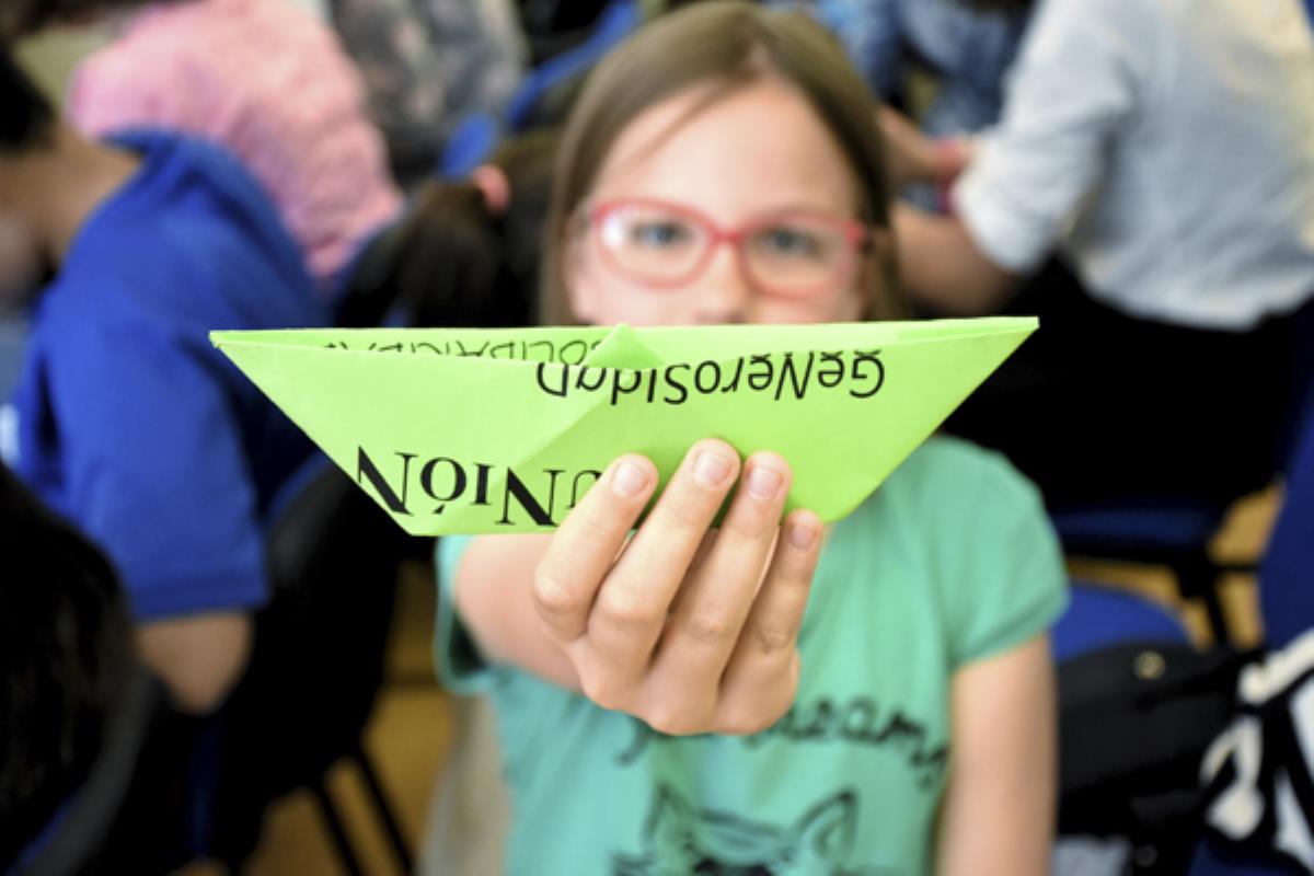 Una vez expuesto el corto de estos alumnos y después de un breve coloquio, ha tenido lugar un acto simbólico que ha consistido en la “suelta” de un barquito de papel con un mensaje en contra del acoso escolar.