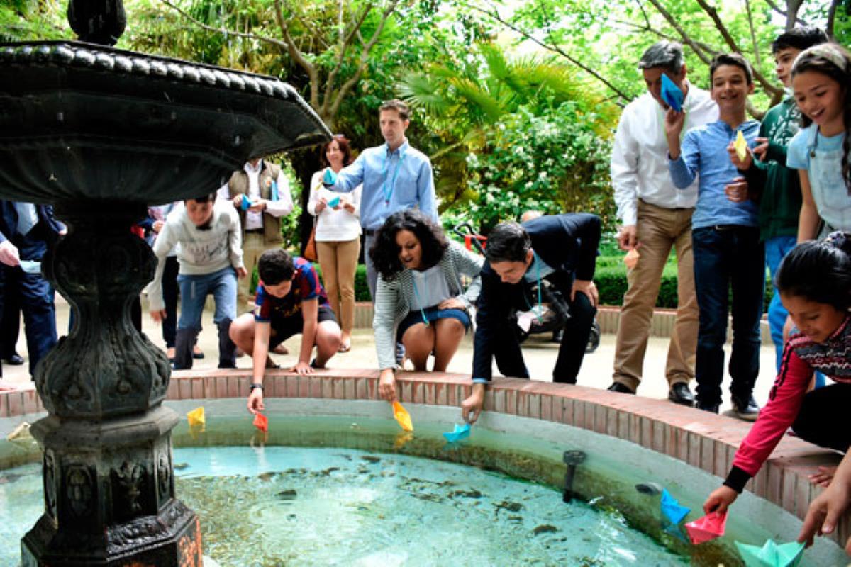 Más tarde, en el jardín de la Quinta de Cervantes y alrededor de la fuente se ha desarrollado un acto simbólico que ha consistido en la “suelta” de un barquito de papel con un mensaje en contra del acoso escolar.