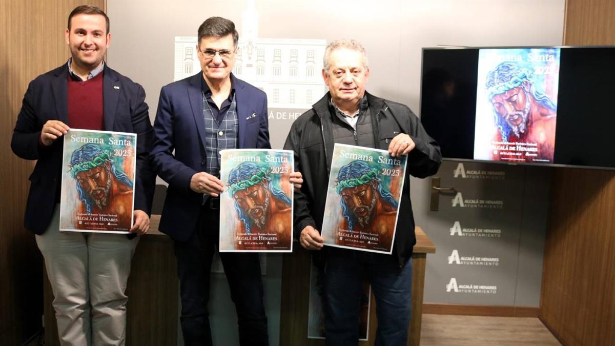 El concejal de Fiestas y Tradiciones, Antonio Saldaña, han presentado el nuevo cartel anunciador de la Semana Santa Complutense, Fiesta de Interés Turístico Nacional.