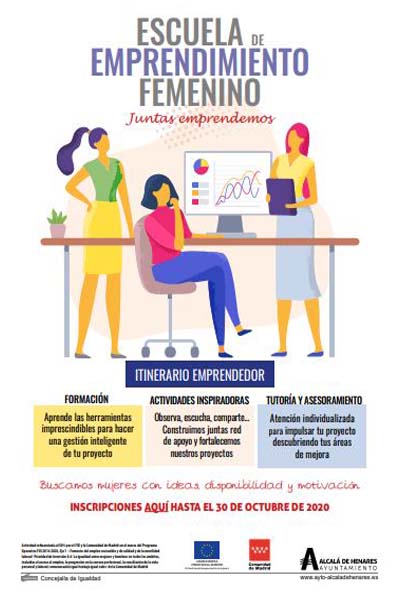 La Concejalía de Igualdad del Ayuntamiento de Alcalá ha iniciado hoy una nueva edición de la Escuela de Emprendimiento Femenino, “Juntas Emprendemos”, una apuesta por la promoción de proyectos liderados por mujeres. Esta iniciativa, enmarcada en el Plan Estratégico de Igualdad de Oportunidades entre mujeres y hombres de la ciudad, tiene entre sus objetivos el impulso municipal al emprendimiento femenino y la puesta en marcha de acciones para favorecer el empoderamiento y el liderazgo de las mujeres.
