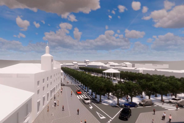 Simulación del proyecto de semipeatonalización de la Plaza de Cervantes/Ayto. Alcalá de Henares