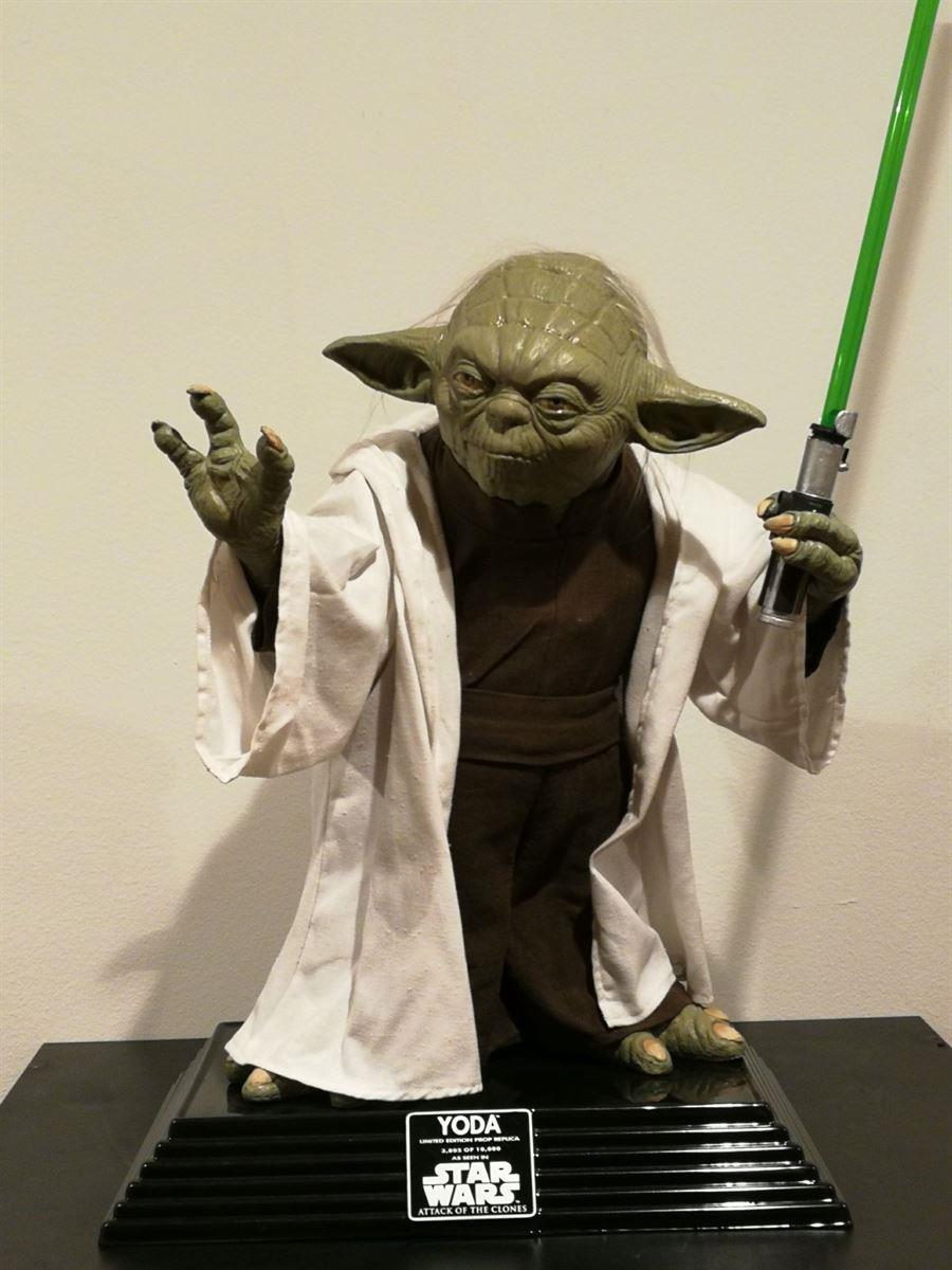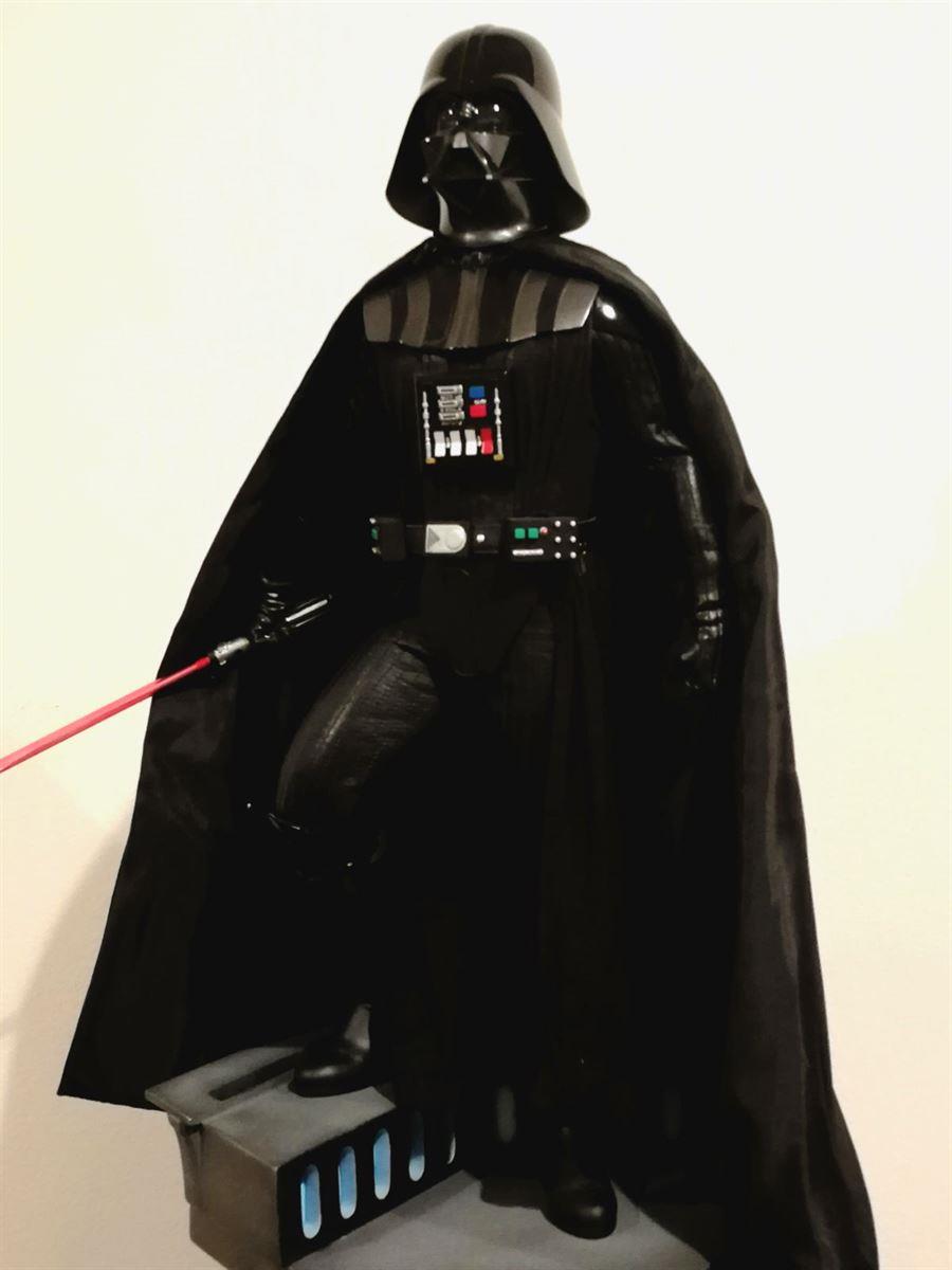 Comenzamos la exposición y la primera sala de la colección nos dejó fascinados con los impresionantes bustos a escala real de varios protagonistas de Star Wars: Yoda, Darth Vader, Han Solo, Luke... ¡todos están presentes! Pero sin duda lo que nos dejó boquiabiertos fue uno de los objetos más apreciados por los amantes de este universo: el sable láser de Darth Maul firmado por el actor que lo encarnó en el episodio I, Ray Park. Una pieza única que seguro que causará sensación a todos los que visiten este microespacio intergaláctico.