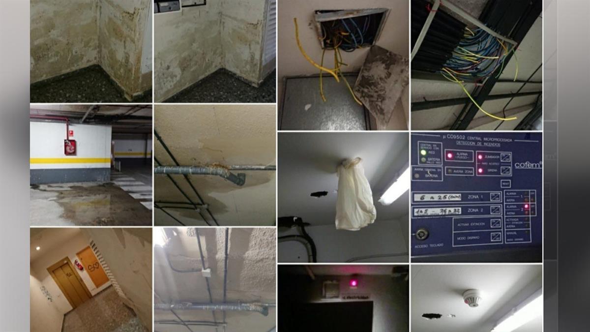 La plataforma vecinal Espartales Unidos ya denunció a inicios de mes los problemas que sufren estos bloques, en los que la asociación de vecinos afirma que viven 130 personas. Sobre las viviendas de la Plaza Reina María Cristina 2, la asociación Espartales Unidos explica: "Sus cuartos de contadores cuentan con una gran cantidad de enganches ilegales, tanto de agua como de luz. Esto provoca que en el garaje se acumulen las goteras y humedades, incluso afectando a los locales comerciales contiguos. Dentro del garaje, debajo del cuarto de agua, se está derrumbando el techo a la vez que chorrea agua. Todo ello provocado por enganches de agua peligrosos para los vecinos, en cualquier momento este techo se puede caer o dejarlos sin luz. Esta agua está llegando a la luminaria de luz, al cajetín y a los cables eléctricos que hay justo encima. A esto se une que dicha comunidad carece de cable toma tierra, porque ha sido robado. Todo ello crea un peligro constante de incendio".