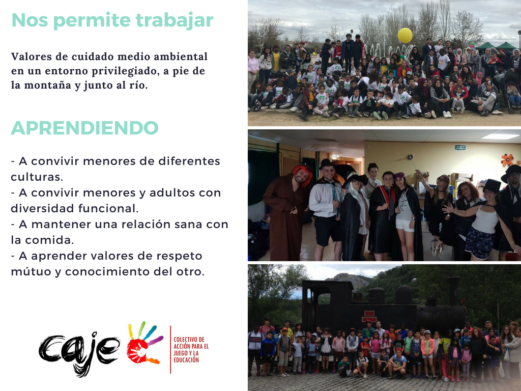 El Colectivo de Acción para el Juego y la Educación (CAJE) lleva años organizando actividades con las que niños y niñas en situaciones desfavorecidas disfruten de unos días de vacaciones fuera de la ciudad. Este año no es una excepción. Por ello se ha iniciado una campaña de Crowfunding destinado a financiar este campamento.