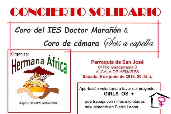 El concierto será gratuito con aportación voluntaria de los asistentes. Lo recaudado irá destinado al Proyecto GIRLS OS+ que trabaja con niñas explotadas sexualmente en Sierra Leona.
