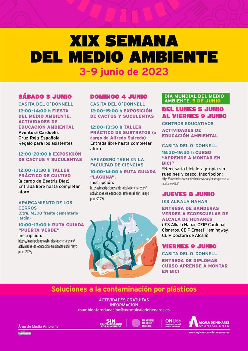Con motivo de la celebración del Día Mundial del Medio Ambiente (el 5 de junio), Alcalá de Henares celebra la XIX Semana del Medio Ambiente del 3 al 9 de junio, haciendo suyo el lema elegido por las Naciones Unidas “Sin Contaminación por plásticos”.