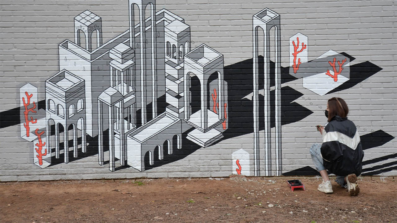 Nerea Sanz, ilustradora y muralista, muestra su obra donde la arquitectura y el surrealismo construyen una imagen que invita a reflexionar sobre nuestro propio tiempo.