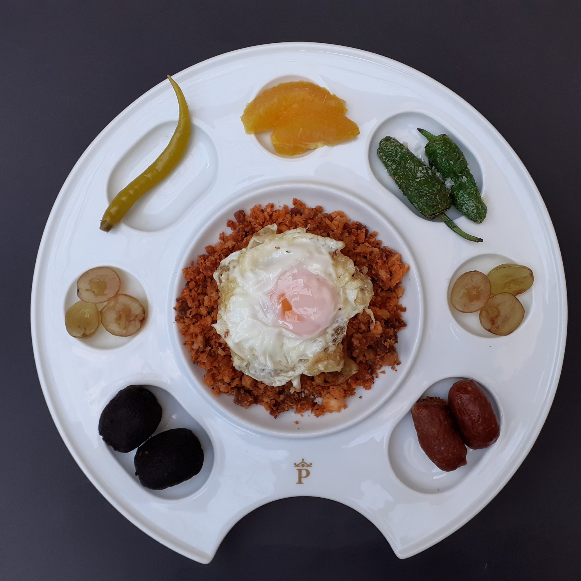 Una reinterpretación de la receta clásica que llega a la mesa presentada en un original plato que, en un guiño cervantino, reproduce la bacía que El Quijote portaba en su cabeza a modo de yelmo