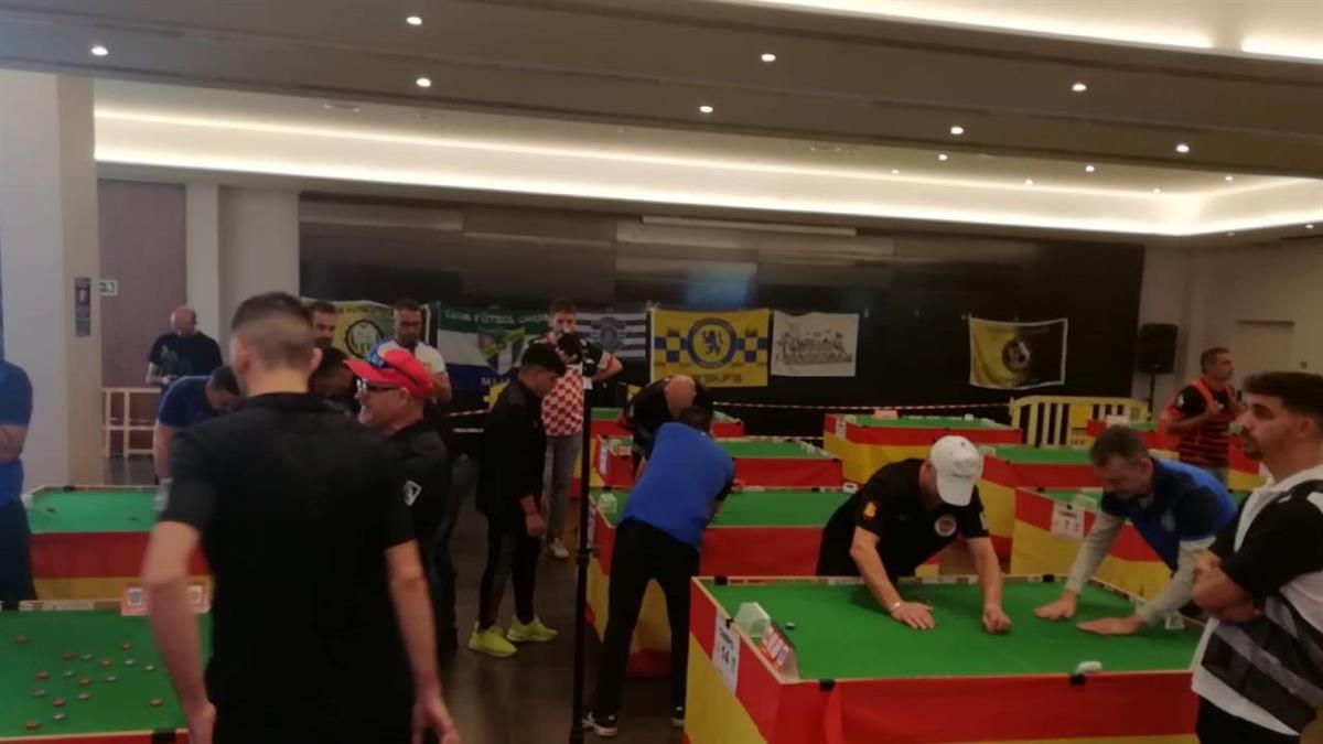 En la categoría de equipos, 21 eran los conjuntos que se presentaban, de toda la geografía española, el conjunto complutense formado por Carlos Garrido, Aitor Broncano, Jose Ángel Vidania, Luís Fernández, Jose Rodríguez y Sergio Rodríguez consiguió su 2º título nacional, logrando imponerse al conjunto gaditano de Campamento, que partían como los claros favoritos habiendo logrado 6 campeonatos nacionales, 5 de los 6 últimos disputados. En esta modalidad de equipos, se disputan 3 partidos individuales y 1 por parejas y se suman los puntos de todos los partidos, en la trepidante final hubo una igualdad máxima, con alternativas en todo momento para ambos equipos, al final se llegó con empate a todo, venciendo un partido cada equipo y empatando en 2 de ellos (5 puntos cada uno), por tanto había que decidir por goles y también aquí, había empate a 8 goles para cada equipo, el siguiente criterio de desempate, era el partido de parejas y ahí fue donde se impuso el conjunto alcalaíno tras vencer la pareja formada por Aitor Broncano y J.A.Vidania por 3-2. Contra todo pronóstico se había impuesto el club de Alcalá, que conseguía su 2º título en esta modalidad, tras el logrado en 2015.