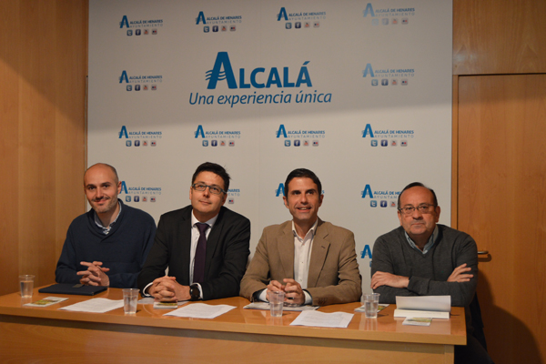 El alcalde de Alcalá de Henares, Javier Rodríguez Palacios, acompañado de Alberto Egido Viciana, concejal de Medio Ambiente y Movilidad; Antonio Gómez Sal, catedrático de Ecología de la UAH y José Raúl Fernández del Castillo, vicerrector de la UAH.