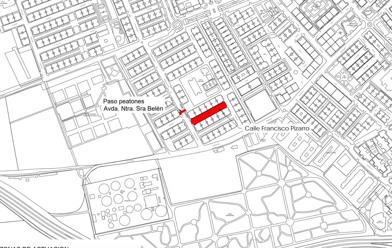 Por otra parte, también se aprobó la memoria para la construcción de un paso de peatones elevado en el número 3 de la Avenida Nuestra Señora de Belén, junto a esta calle de Francisco Pizarro y uno de los accesos al CEIP Santos Niños. Así, se conseguirá dotar de mayor accesibilidad y seguridad a este paso de peatones junto al centro educativo.
