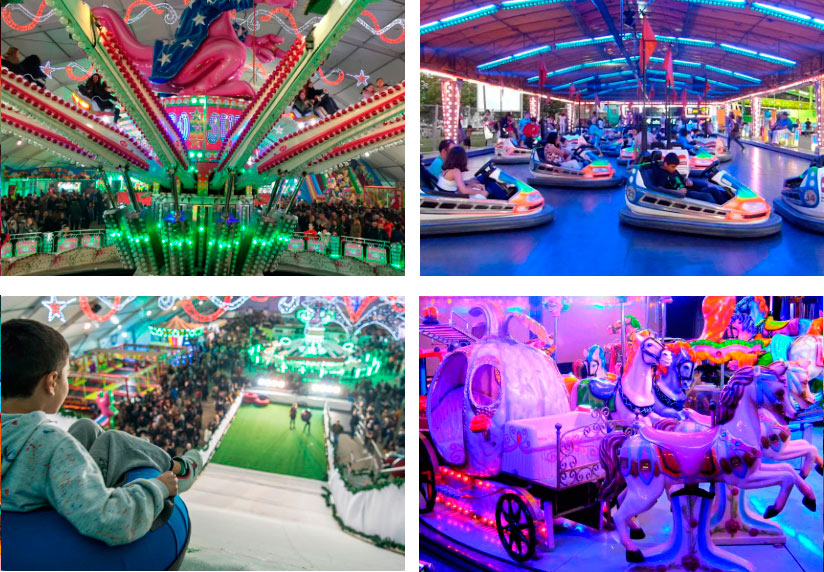 Más de 5000 metros cuadrados de carpa dedicados al disfrute y la diversión, llenos de actividades, atracciones, restauración etc que harán de la carpa gigante el lugar ideal para pasar unos maravillosos días de navidad.