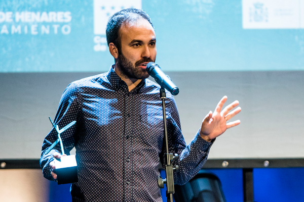 Álvaro Gago Díaz, recogiendo su 'Primer Premio Ciudad de Alcalá' en el certamen ALCINE47. Imagen: Ayto. Alcalá de Henares