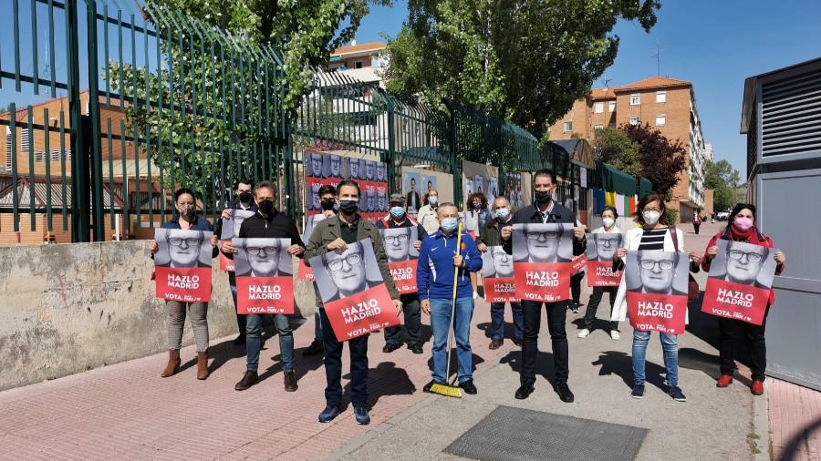 El alcalde y secretario general del PSOE de Alcalá de Henares, Javier Rodríguez Palacios, el candidato alcalaíno a la Asamblea de Madrid, Fernando Fernández Lara, compañeros y compañeras de la Agrupación, así como concejales del Gobierno socialista de Alcalá participaron en la pegada de carteles de inicio de campaña electoral.