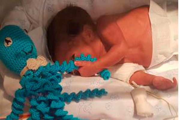Llega `Abrazatupulpo´ al Hospital Universitario Príncipe de Asturias. La Unidad de Neonatos se ha llenado de unos graciosos pulpos de crochet, desarrollados por un grupo de vecinas del Corredor del Henares. Se trata de un emotivo proyecto, sin ánimo de lucro, que supone un nuevo medio de contención para los pacientes prematuros. Este grupo de mujeres ha puesto a disposición de los niños y sus familias 20 pulpos que, posteriormente, podrán llevarse a casa tras ser dados de alta. A cambio, de forma altruista, se solicita a los padres que donen material para poder continuar con la iniciativa solidaria de los `Abrazatupulpo´.