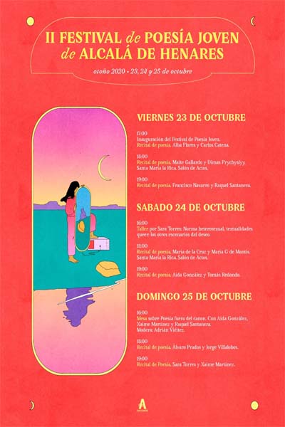 Vuelve a nuestra ciudad de Alcalá el Festival de Poesía Joven, una segunda edición marcada por las nuevas medidas sanitarias, y que se celebrará de manera on-line entre los días 23, 24 y 24 de octubre, aunque alguna actividad se podrá hacer de forma presencial, tanto el día de la inauguración como el sábado 24.