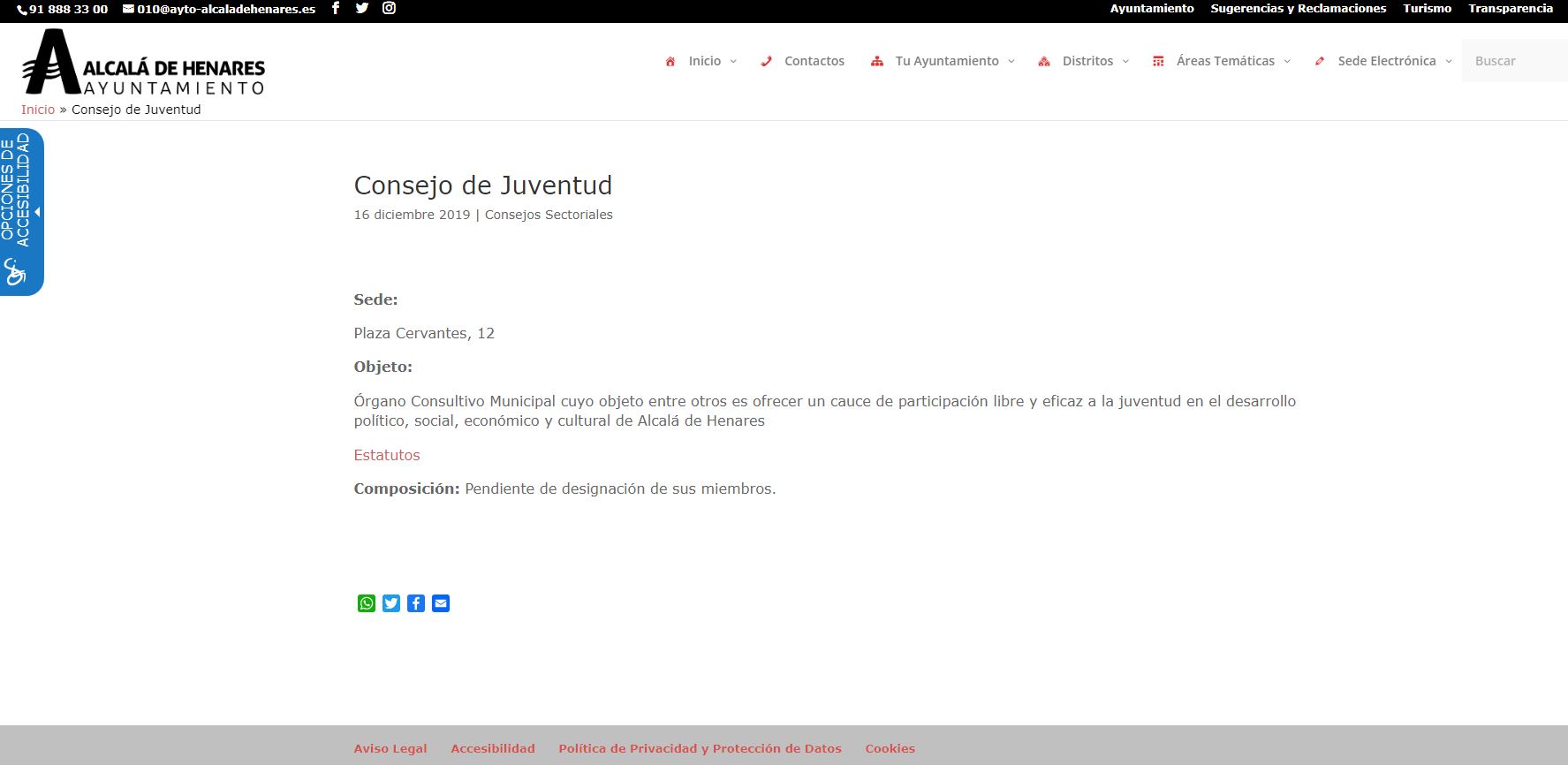 En este sentido, si acudimos a la página web del Ayuntamiento y buscamos 'Consejo de Juventud', aparece que la composición del mismo todavía está pendiente de asignación, es decir, o no han actualizado la página, o ni siquiera hay miembros para llevar a cabo estos encuentros. Además, al pulsar en estatutos, redirige a la sede electrónica del consistorio, no a las normas que rigen el consejo.