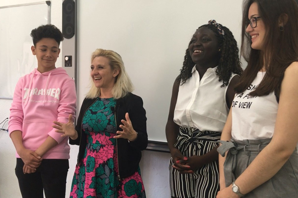 Los alumnos del IES Cardenal Cisneros junto a Coralia, su profesora de Lengua y Literatura en el centro.