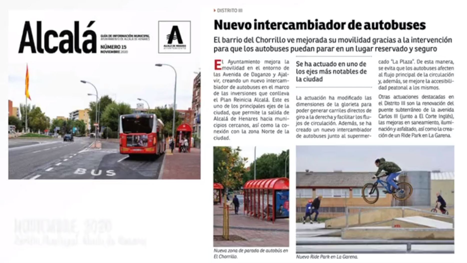 La concejala de Seguridad Ciudadana ha aprovechado para sacar a relucir los "grandes éxitos" del anterior mandato en materia de movilidad, entre los que se encuentra el "intercambiador de autobús" de la Avenida de Daganzo. Un desvío en el que colocaron dos marquesinas y donde apenas caben dos autobuses al mismo tiempo. Es más, el propio Rodríguez Palacios, en declaraciones a los medios, definía un intercambiador como "un espacio donde esperar al autobús sin que te llueva encima". Dicho y hecho: "Nuevo intercambiador de autobuses" en Alcalá.