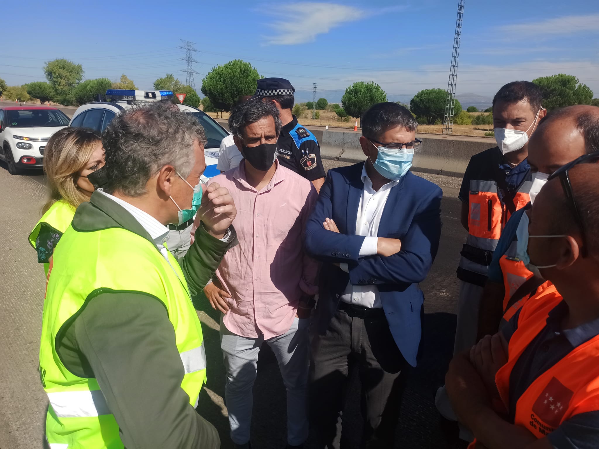 El alcalde de Alcobendas, Rafael Sánchez Acera, y el vicealcalde, Aitor Retolataza, junto al director general de carreteras de Comunidad de Madrid, Jorge Urrecho, han comprobado cómo se desarrollan los trabajos que concluirán en unas semanas.