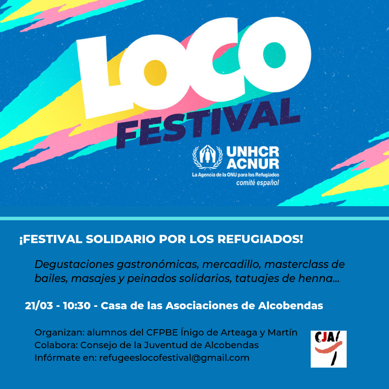 Más de 120 centros educativos de toda España participan en el proyecto educativo y solidario ACNUR Loco Festival, de los cuales 15 proceden de la Comunidad de Madrid y uno de ellos de la localidad de Alcobendas. En concreto los alumnos del Centro de Educación Secundaria y Formación Profesional Íñigo de Arteaga y Martín han organizado en la Casa de Asociaciones de la localidad el jueves 21 de marzo un evento de concienciación en su entorno.
