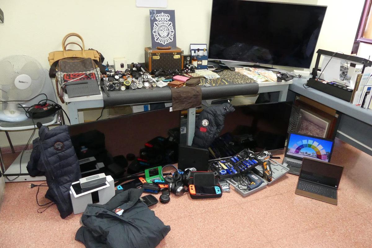 En el registro del domicilio de los detenidos, se incautaron más de 6000 euros en efectivo, 56 relojes de alta gama, bolsos de reconocidas marcas, material electrónico como videoconsolas, ordenadores portátiles, televisiones, teléfonos móviles, tablets... y diversos enseres personales. También encontraron billetes de avión con salida en fechas próximas y las maletas preparadas localizando entre la ropa y el calzado los efectos sustraídos.