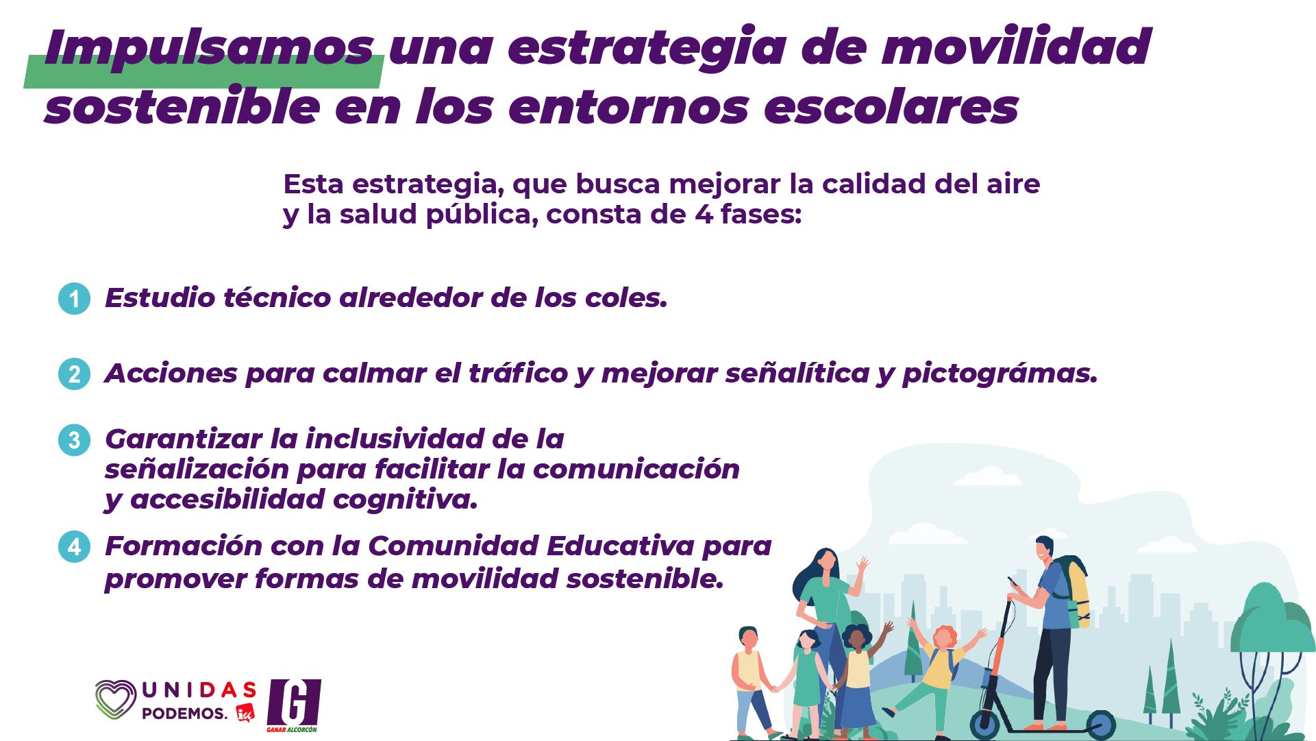 Más desarrollada, la primera fase supondrá el completo estudio técnico de la totalidad de entornos escolares del municipio, que será ejecutada por personal técnico de la concejalía de sostenibilidad, movilidad y renovables.