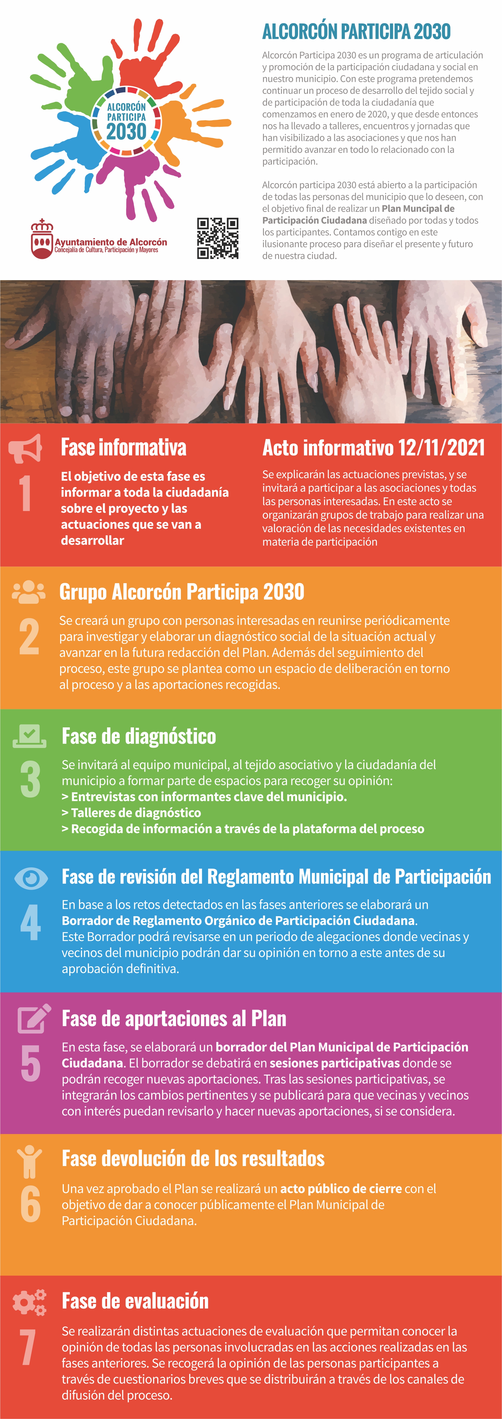 Según ha indicado, “se trata de diseñar conjuntamente cómo y en qué quiere participar la sociedad alcorconera; de este modo, se irán impulsando progresivamente las propuestas que surjan de este proceso, con el fin de crear las estructuras, eventos y rutinas de trabajo necesarias para articular una participación ciudadana crítica, creativa y transformadora en nuestra ciudad”.
