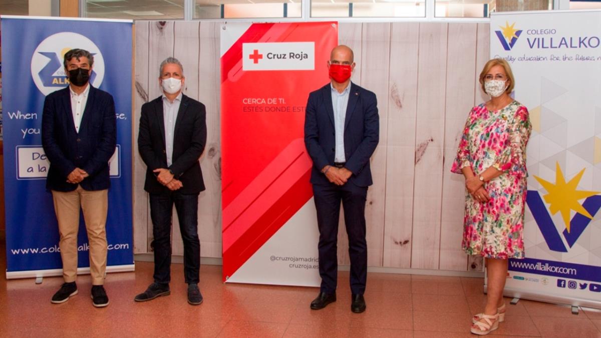 A la firma, que ha tenido lugar en las dependencias del Colegio Alkor, han acudido D. Francisco Gabriel Sánchez Parodi, secretario de Cruz Roja Española en la Comunidad de Madrid, D. Saturnino Peña Solís, presidente de la Asamblea Cruz Roja Alcorcón, D. Miguel Ángel González López, presidente de la cooperativa Prosciencia y director del Colegio Alkor, y Dña. Rosa María García-Cabañas León, directora del Colegio Villalkor.