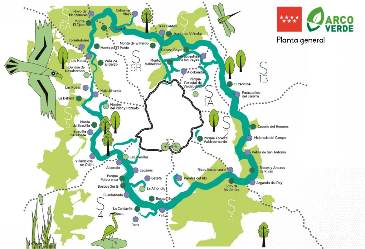 El objetivo es crear un Gran Corredor alrededor del Anillo Ciclista de la región para favorecer, conservar y proteger la biodiversidad madrileña, en una apuesta por la movilidad sostenible y la lucha contra el cambio climático, donde se va a compensar la emisión de cuatro millones de toneladas de CO2 con la plantación de 540.000 árboles y arbustos y la creación de 25 nuevas áreas de biodiversidad. Asimismo, Arco Verde se conecta con la capital de Madrid por el Sur con la Casa de Campo y por el Norte con el Parque Forestal de Valdebebas, así como con las principales estaciones de cercanías y metro, al objeto de fomentar su uso de modo sostenible, sin necesidad de desplazamiento con vehículo privado.